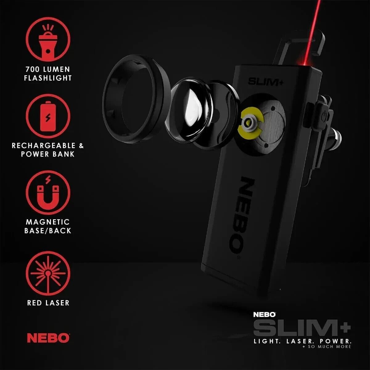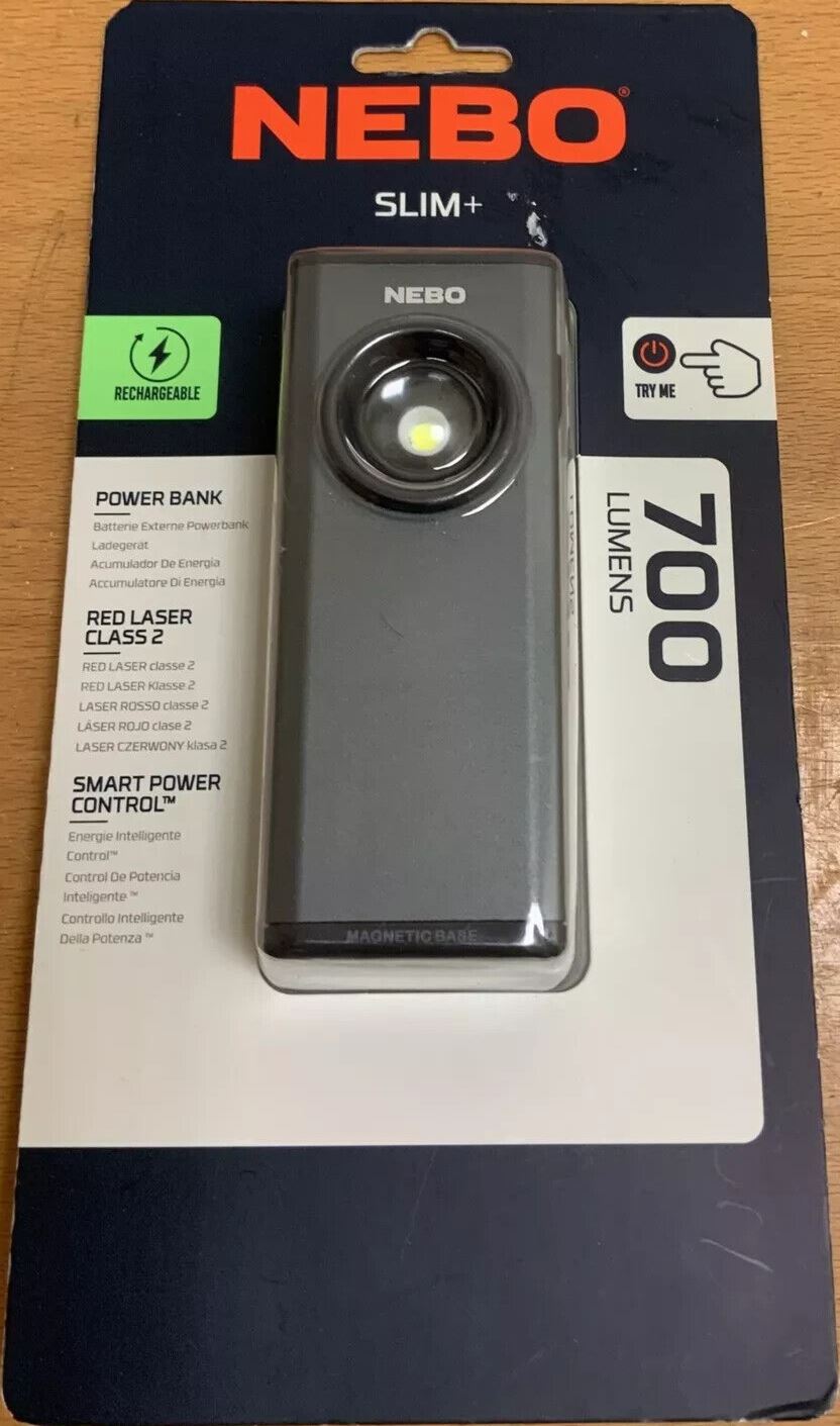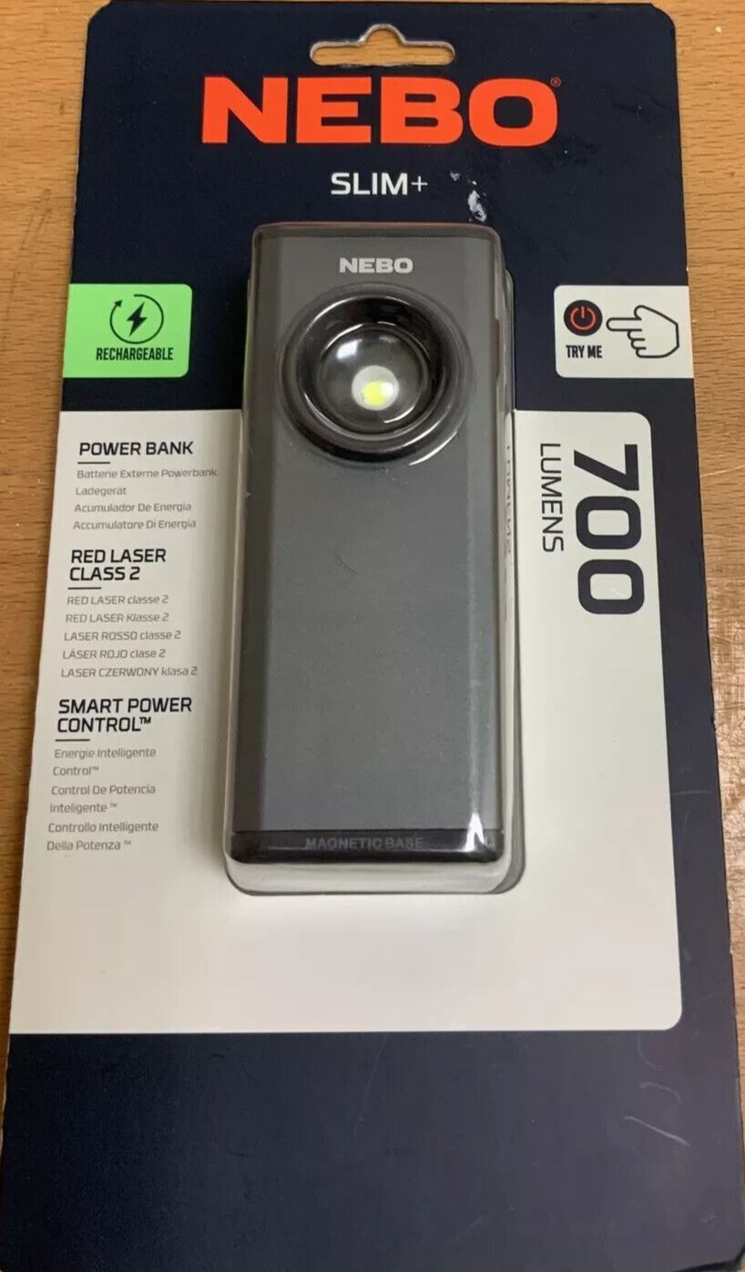 Nebo Slim+ 700 Lumen Rechargeable Pocket Work LED Torch, Laser & Power Bank