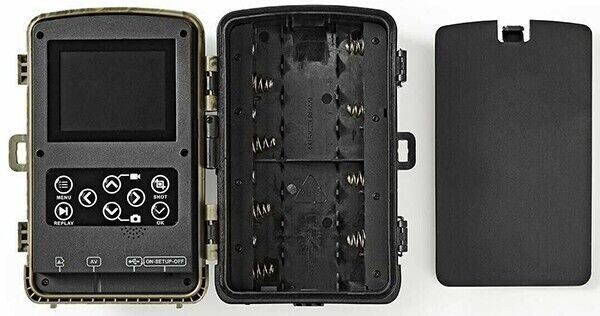 NEDIS 150GN HD Wildlife Camera 16 MP PIR Night Day Full HD Camouflage Capture that one special moment in glorious detail on camera. A video of a flock of deer running through the forest or a snap of that bear or wolf exploring. Specification:- Feature Very low Energy Consumption Night Vision Material ABS Colour Leaves/Green Camera design Detector Type Camera Video resolution 1080p 30fps Wireless technology No Interface DC Storage type microSD IP rating IP66 Battery type 4x AA/LR6 8x AA/LR6 Detector angle 120 ° Detector range 20.0 m Image chip CMOS 5 Megapixel Infrared type Black No-Glow IR Input voltage 6 VDC Megapixel 16 MPixel Night vision 15 m Operating temperature -30 - +70 °C Screen size 2.4" Trigger time 0.6 s Viewing angle 108 °
