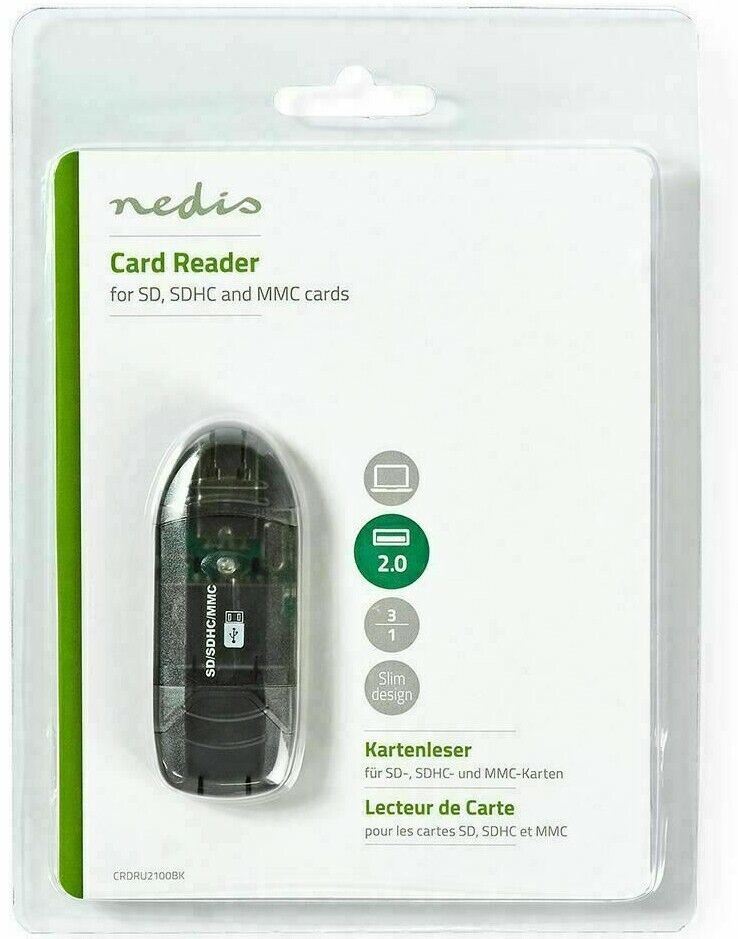 Nedis SD SDHC MMC Card Reader USB 2.0 CRDRU2100BK Brand new UK Stock, in original packaging with full Guarantee