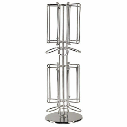 Elegant wire framing allows different types of coffee capsules to be stored and sorted in a clear manner 8 wire holders that each hold up to 5 capsules With metallic finish What's in the Box 1 "Rondello" coffee capsule stand Technical Details Installation: Free-Standing Material: Metal Max. Capsule Capacity: 40 Depth: 12 cm Height: 36,5 cm Width: 12 cm Colour: Silver Chrome-Plated Suitable for: Nespresso Capsules