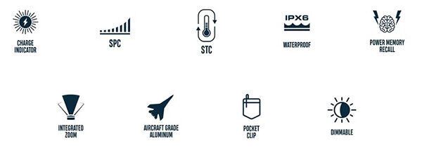 • Strobe (1,000 lumens) - 2.5 hours / 125 meters