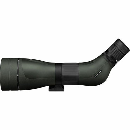 NEW Vortex Diamondback HD 20-60 x 85mm Angled Spotting Scope +Case HD Glass Key Features An ideal companion for long-range viewing, the 45° angled viewing Vortex Optics Diamondback HD 20-60x85 Spotting Scope delivers bright and sharp high-contrast images with true-to-life colour and crisp clarity at all magnifications, even in low and challenging light conditions or when observing subjects on maximum magnification at extreme distances. The combination of magnification, objective size, and optical performance also makes this spotter perfect for basic amateur astronomy and wide-field astrophotography techniques. Image quality is enhanced through the use of anti-reflection fully multicoated high-density (HD) extra-low dispersion (ED) glass elements in the lens system that maximize light transmission, increase colour fidelity and contrast, and improve clarity and resolution through the entire zoom range. The massive 85mm objective boosts the spotter's light-gathering capabilities to keep views bright and clear in even challenging light conditions and when observing subjects at long distances on maximum magnification. This version of the Diamondback HD is configured with the eyepiece set 45° to the body to maximize viewing comfort whether you're standing, sitting, or lying prone when looking through it. Its fixed eyepiece gives you the ability to scan wide swaths of the terrain for subjects with the ability to dial in and make detailed observations and positive identification. A helical focus system eliminates the snag hazard that knobs are known for. Its mounting system features a standard 1/4"-20" socket and its shoe is ARCA-style compatible, which means you can directly mount it on an ARCA head without the need for additional plates. Its mounting collar can also be rotated at 45° increments for precise eyepiece placement and optimized viewing comfort. The Diamondback's chassis is argon filled and O-ring sealed to be waterproof and resistant to internal fogging when moving through extreme changes in temperature and environmental conditions. A retractable sunshade prevents lens flare that can spook game and keeps rain and snow off the objective to ensure clear views in less-than-ideal weather. Vortex includes a simple neoprene case that offers further protection against knocks and moisture. Tethered eyepiece and objective caps offer protection while preventing their loss when you're using the spotting scope. Optical Performance Use and Handling Construction Details What’s Included? Specification Viewing Angle Angled Prism Type Porro Magnification 20 to 60x Objective Lens Diameter 85 mm Field of View 20x: 108.0' @ 1000 yd / 35.9 m @ 1000 m Minimum Focus Distance 24.6' / 7.5 m Exit Pupil Diameter 20x: 4.25 mm Eye Relief 20.3 to 18.3 mm Fog-proof Yes, Argon Filled Water Resistance Waterproof Tripod Mounting Thread 1/4"-20 Female Dimensions L: 16.0" / L: 40.6 cm Weight 61.3 oz / 1.7 kg
