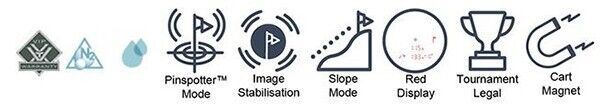 The Vortex Golf Blade Slope is Tournament Legal as the Slope Mode can be turned off (External LEDs show when this mode is activated) and offers a ranging accuracy of to within 1 yard at 100yds range. Its Comfort Guard exterior ensures a secure grip no matter what the weather and protects against impacts. The Blade is Waterproof and Shockproof and has Vortex's 'Clearview Optics' letting you see the course clearly thanks to the quality of glass used.