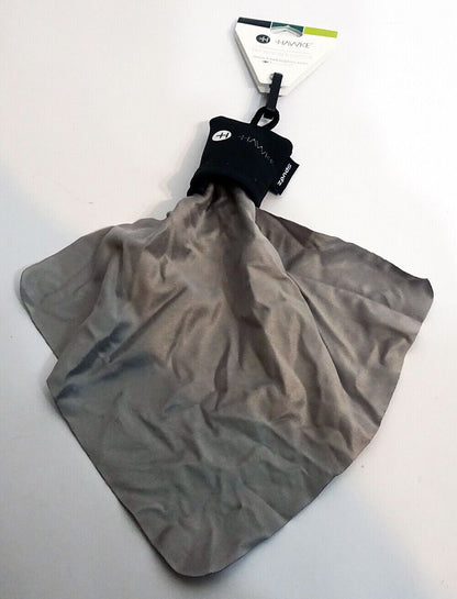 This is a Hawke Optics branded by Spudz, Microfibre Cleaning Cloth 6" x 6" in Black with Hawke Logo as well as Spudz Logo with Grey Cloth