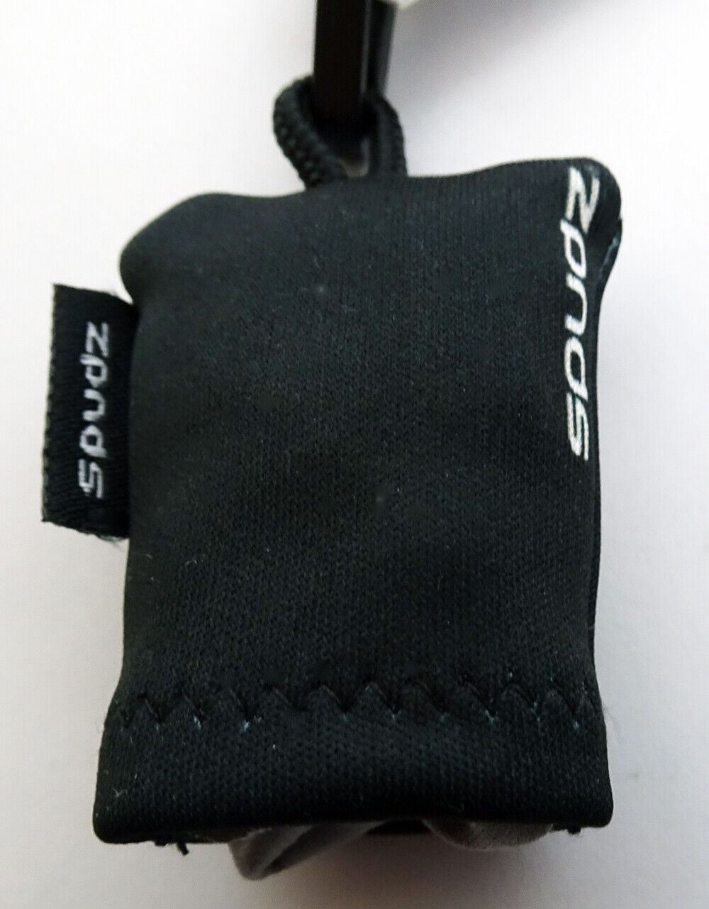 The Spudz lens cloth stays attached to the inside of its neoprene storage pouch and has a snap hook that provides an easy way to clip it and keep it . The Patented design not only makes Spudz attractive, but very useful on a variety of products.