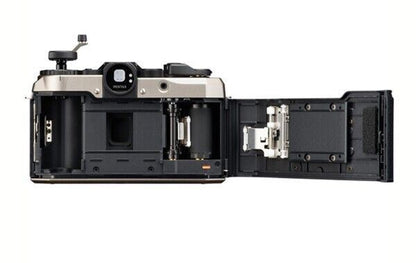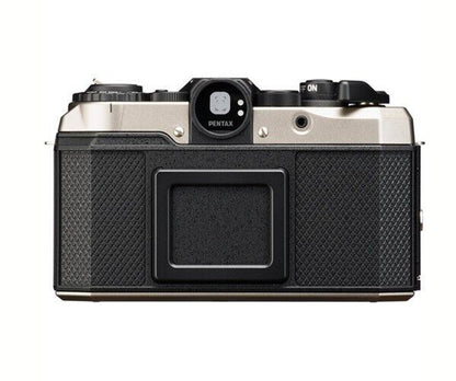 Despite being a brand-new camera, the Pentax 17 borrows many legacy details from past Pentax cameras to inform its distinct design: the film rewind knob is taken from the Pentax LX, the ISO dial from the SP, the flash and shutter release from the KP, the lens housing from the Espio Mini, the front logo text from the 67, the knurled battery cover from the DA WR series of lenses, the film advance lever from the Auto 110, and the magnesium alloy top plate from a special edition LX. Also, the viewfinder includes Pentax's own classic logo along with the Asahi AOCo logo and a film plane indicator taken from their line of DSLRs.