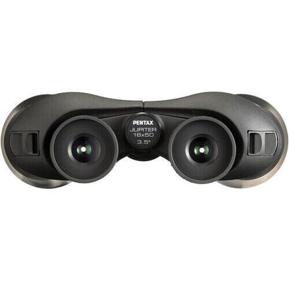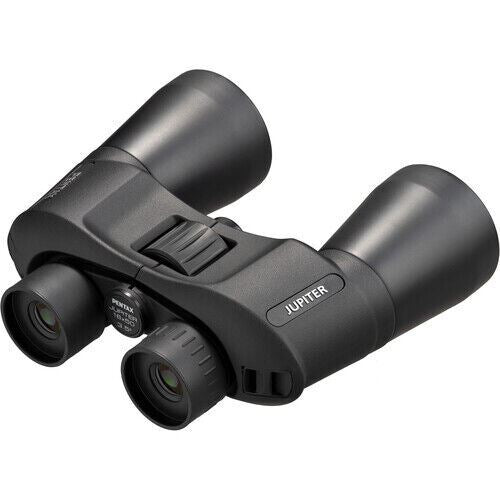 Pentax Jupiter 16 x 50 Porro Prism Armoured Binoculars + Case The powerful 16x magnification of the Pentax 16x50 Jupiter Binoculars greatly enlarge the view of distant objects. You'll see more details of far-off church steeples, mountaintops, or ships than with most recreational binoculars, and the large 50mm objective lenses produce a bright, crisp view even at times of the day when less light is available. The center focus adjustment knob is easy to reach so you can effortlessly dial in a tack-sharp image. Rubber armoring improves the binoculars' durability and provides a comfortable grip. To counteract the shake that can affect high-magnification binoculars, mount the 16x50 Jupiter on a tripod using the optional TP-3 adapter. What’s Included? Specification Prism Type Porro Magnification 16x Objective Lens Diameter 50 mm Angle of View 3.5° (Actual) Field of View 183' @ 1000 yd / 60.8 m @ 1000 m Minimum Focus Distance 33.8' / 10.3 m Exit Pupil Diameter 3.1 mm Eye Relief 11 mm Diopter Adjustment None Focus Type Centre Dimensions 7.8 x 6.6 x 2.6" / 19.8 x 16.8 x 6.6 cm Weight 31.2 oz / 885 g