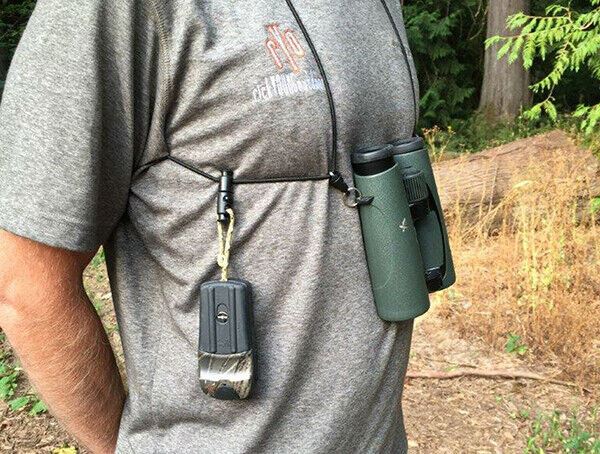 Rick Young Outdoors Ultra Light Bino Binocular Harness in Pink #0564 There are several suspension systems on the market today for binoculars and range finders but none like this one. Watch the video provided and compare. The idea of having your bino's readily accessible is a good one, but traditional suspension systems are bulky and they stretch out and sag. Our USA mfg shock cord does not get soft and lose its elastic strength or memory. The shock cord grips or hugs your body and transfers the weight of your binoculars equally around your shoulder and chest without digging into your skin or body. Unlike the wide flat strap harnesses our round cord will not vibrate or flutter in the wind. After countless years of field testing and now thousands of happy customers I think it's safe to say that we have reinvented the bino harness from the ground up. Fast single point adjustment allows you to quickly fit the harness to your change of clothing. Never again will your binos be down at your belt line. Advantages of the Ultra-light Bino Harness