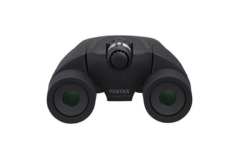 Ricoh Pentax UP 8-16 x 21 Compact Zoom Binoculars in Black The rugged multi-talent New Fully-multi-coated optics Fully multi-coated lenses serve the essential purpose of maximizing the amount of light passing through a lens, thereby prevent flare and ghosting from interfering with your view. Pentax applies multiple layers of coatings to every surface of every element and prism in the full Sport Optics line-up. These fully-multi-coated optics assure the maximum light transmission resulting in a clear, crisp view of the world. BaK4 prisms Due to its outstanding refractive index, the BaK4 glass prism found in all Pentax Sport Optics is highly acclaimed for its perfectly round exit pupil and clear, unvignetted image. Aspherical lens elements Edge-to-edge sharpness is a vital element to comfortable viewing. To achieve this, we utilise aspherical lens elements in our eyepieces. This is a specially shaped lens design that reduces aberration to a minimum. Inner Focus Optics Design This sophisticated optical design is critical to low-maintenance and long life guarantee. Exposure to airborne particles and moisture is avoided, thereby ensuring that no outside influences can penetrate the housing and disrupt functionality. Long eye relief design Design The long eye relief offered in all Pentax Sport Optics allows the viewer to see the entire field of view clearly and effortlessly. This is especially beneficial to eyeglass wearers, and allows viewing for extended periods of time without added eye strain.Key Features: Pentax Up 8-16x21 Zoom Binoculars