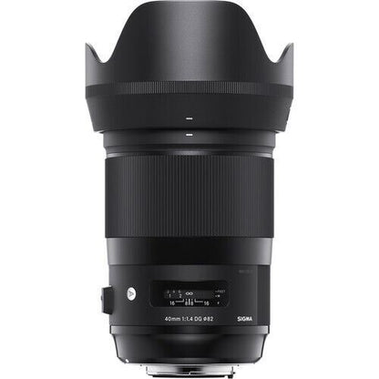 Key Features Designed within the rigorous tolerances of a cine lens, the Canon EF-mount Sigma 40mm f/1.4 DG HSM Art Lens is a wide normal-length lens characterised by a bright design and sophisticated optical layout. The fast f/1.4 maximum aperture helps to achieve shallow depth of field and selective focus effects, and also suits working in difficult lighting conditions. The optical design incorporates a series of low dispersion and aspherical elements, which help to improve sharpness and clarity by controlling both spherical and chromatic aberrations. A Super Multi-Layer Coating is also featured, and helps to minimize flare and ghosting for greater contrast and color accuracy when working in strong lighting conditions. Complementing the imaging capabilities, the lens sports a Hyper Sonic Motor to produce quick, smooth, and quiet autofocus performance with full-time manual focus override. The physical design features a brass bayonet mount, which offers rigidity and mounting precision along with a seal to guard against dust and moisture. Additionally, a rounded nine-blade diaphragm contributes to a pleasing bokeh quality. · As part of the Art line within Sigma's Global Vision series, this lens is designed to achieve truly notable optical performance and is ideally suited for creative and artistic applications. · Short-normal prime is designed for full-frame Canon EF-mount cameras, however is also suitable for APS-C models where it provides a 64mm equivalent focal length. · Impressively bright f/1.4 maximum aperture is well-suited for working in low-light conditions and also provides greater control over the focus position when using shallow depth of field techniques. · Three F Low Dispersion (FLD) and three Special Low Dispersion (SLD) elements are featured in the optical design, and help to reduce color fringing and chromatic aberrations for improved clarity and color accuracy. · One aspherical element is used to help limit distortion and spherical aberrations and also contributes to greater overall sharpness and accurate rendering. · A Super Multi-Layer Coating has been applied to lens elements in order to minimize lens flare and ghosting and contribute to producing contrast-rich and color-neutral imagery, even in backlit conditions. · Rounded nine-blade diaphragm contributes to a smooth and pleasing bokeh quality. · The integrated HSM (Hyper Sonic Motor) realizes quick and quiet autofocusing, which is further complemented by an optimized AF algorithm to produce smoother focusing performance. The HSM also permits full-time manual focus control simply by rotating the focus ring at any time. · Specialised electromagnetic aperture mechanism provides greater exposure control stability that is especially beneficial when working with fast continuous shooting rates. · The bayonet mount is constructed from brass for ensured accuracy and durability. Additionally, rubber sealing is incorporated in the mount design to render it dust- and splash-resistant. · Protective coating has been applied to the front element and is both water and oil-repellent to aid in cleaning. · This lens is compatible with the optional Sigma USB Dock for fine-tuning different lens characteristics and updating its firmware. What’s Included? Specification Focal Length 40mm Maximum Aperture f/1.4 Minimum Aperture f/16 Lens Mount Canon EF Format Compatibility Full-Frame Angle of View 56.8° Minimum Focus Distance 1.31' / 40 cm Maximum Magnification 0.15x Optical Design 16 Elements in 12 Groups Diaphragm Blades 9, Rounded Focus Type Autofocus Image Stabilization None Filter Size 82 mm (Front) Dimensions (ø x L) 3.46 x 5.16" / 87.8 x 131 mm Weight 2.65 lb / 1.2 kg Package Weight 3.865 lb Box Dimensions (LxWxH) 8.45 x 7.2 x 6"
