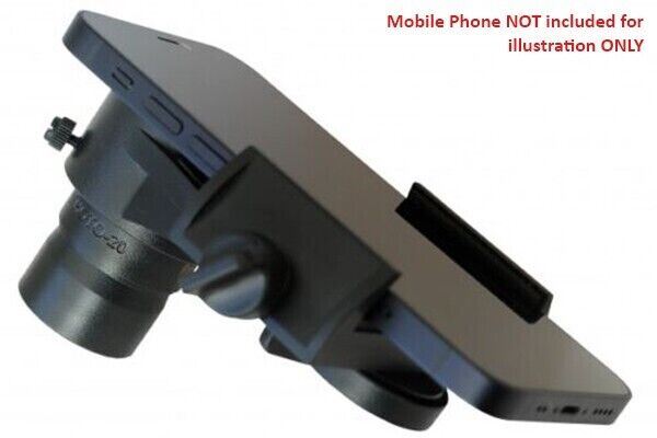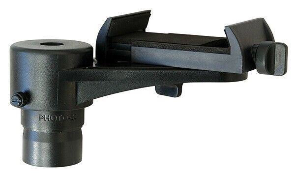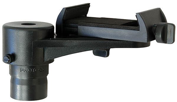 Unlike many smartphone adaptors, the SmartPhoto™ adaptor is remarkably simple to use. The smartphone is first clamped securely in the protective foam-lined jaws of the adaptor, and by loosening the other clamping bolt, the smartphone camera can be easily centred over the eyepiece by moving the smartphone either backwards, forwards or pivoting sideways. The adaptor is secured to the eyepiece with two plastic screws.