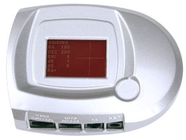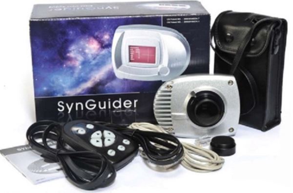 What makes the SynGuider unique is it's built-in display screen. This not only gives access to a comprehensive set of options for controlling the camera and the guiding parameters, but it also displays the actual guide stars. Once you have chosen a suitable guide star with your own eyepiece and replaced it with the guide camera, the display immediately shows the guide star. It's a subdued white-on-red display to help maintain your night vision. The screen is divided into two zones, the left half displays the various menus and text data and the right half shows a real-time 1-bit image of the star in the field of view"...."Price has always been an issue with other stand-alone auto-guiders - you previously had to spend a similar amount to a PC and a conventional guide camera combined. But the SynGuider changes all that: what we have here is a complete system that costs less than many conventional guide cameras on their own"