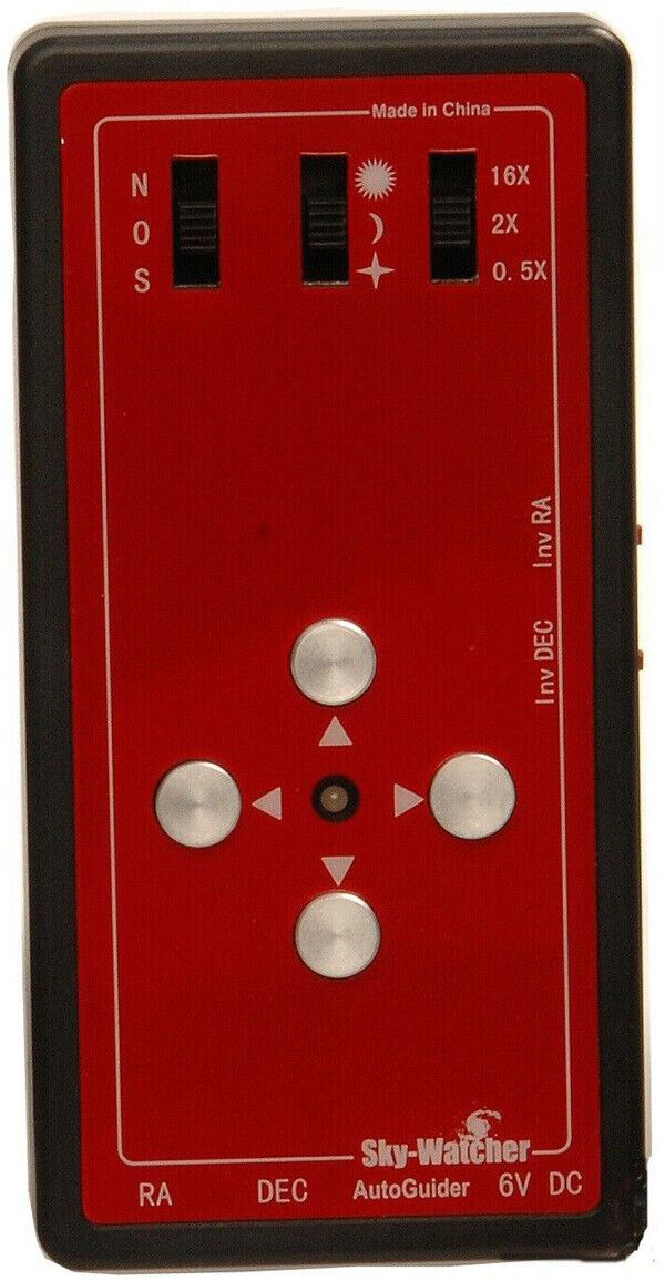 The new enhanced handset has an ST4 interface for an Auto-Guider, such as Sky-Watcher’s Synguider. Features selectable SOLAR, LUNAR and SIDEREAL tracking rates, plus additional selectable adjustment rates of 0.5x, 2x and 16x. Also the hand controller has a convenient facility to invert the direction of the UP, DOWN, LEFT, RIGHT handset keys, so you can have the same directions on the handset as you see through your telescope. Designed for use in both north and south hemispheres.