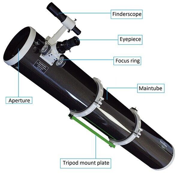 Features High Quality Parabolic Primary Mirrors to eliminate spherical aberrations inherent in 'fast' focal lengh reflectors with spherical primary mirrors. The mirrors are parabolized to bring all the light rays to the same focal point to give sharp, constrasty images, which are full of detail.