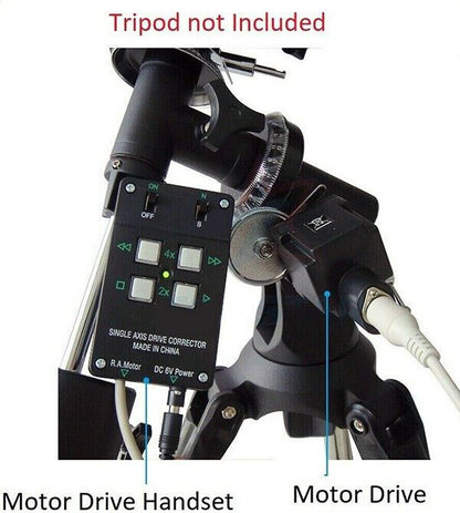 Skywatcher RA MOTOR DRIVE FOR EQ2 WITH MULTI-SPEED HANDSET #20407 This RA Motor Drive set can be fitted to any Skywatcher telescopes which are supplied with an EQ2 equatorial mount. The motor drive is perfect for long-exposure astrophotography. Supplied with a multi speed handset for a choice of 1x, 2x or 8x motor tracking of the R.A. axes. The drive can be operated with Battery. Supplied with cables, hand controller and battery case.
