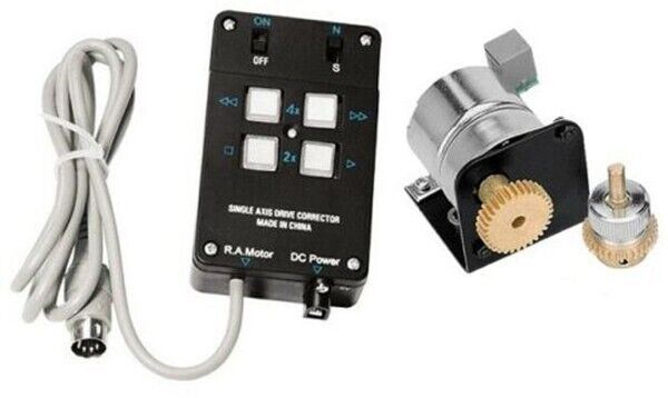 Skywatcher RA MOTOR DRIVE FOR EQ5 (WITH MULTI-SPEED HANDSET) #20462 This RA Motor Drive set can be fitted to any Skywatcher telescopes which are supplied with an EQ5 equatorial mount. The motor drive is perfect for long-exposure astrophotography. Supplied with a multi speed handset for a choice of 1x, 2x or 8x motor tracking of the R.A. axes. The drive can be operated with Battery. Supplied with cables, hand controller and battery case.