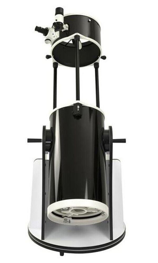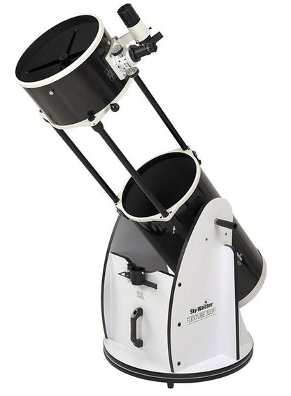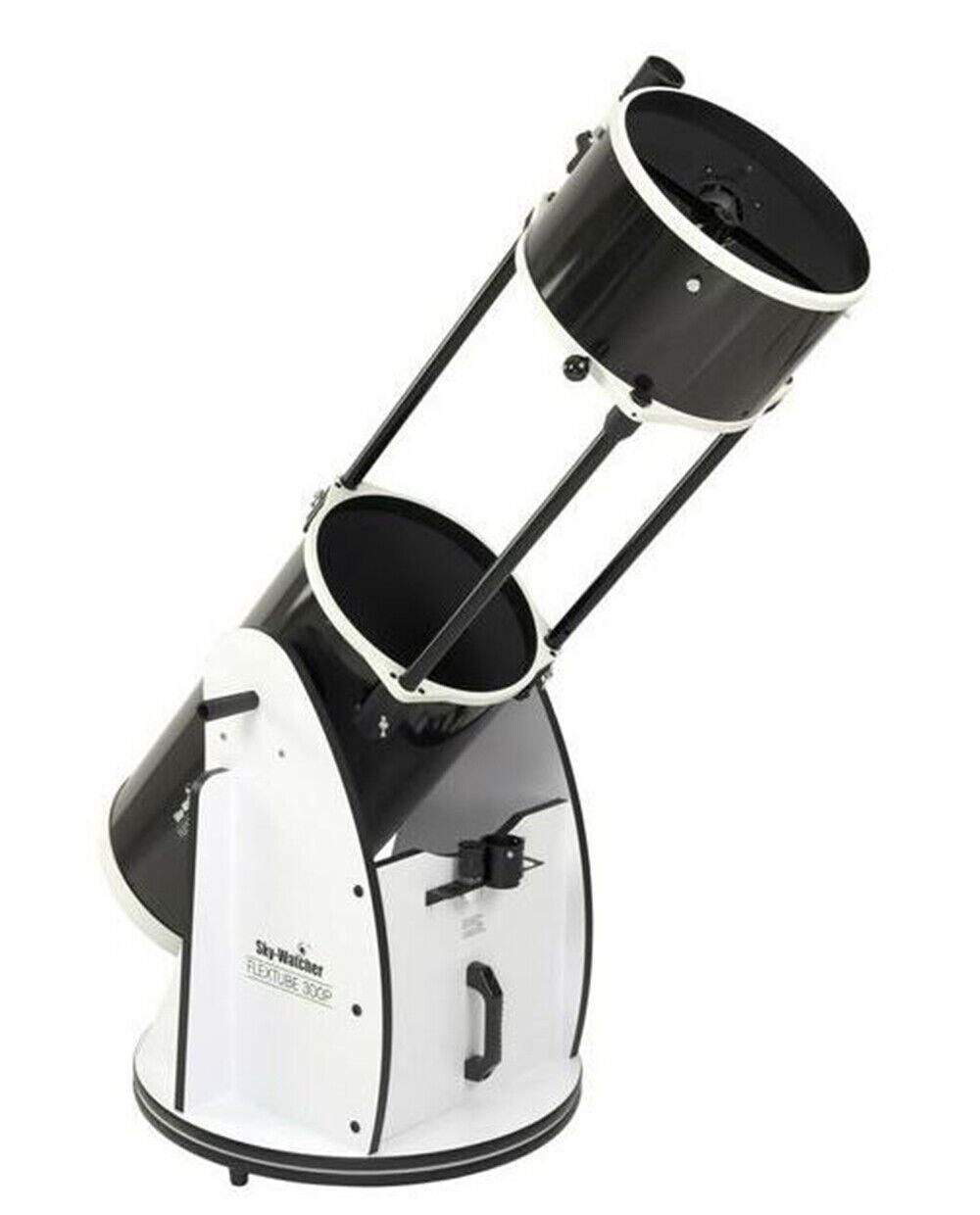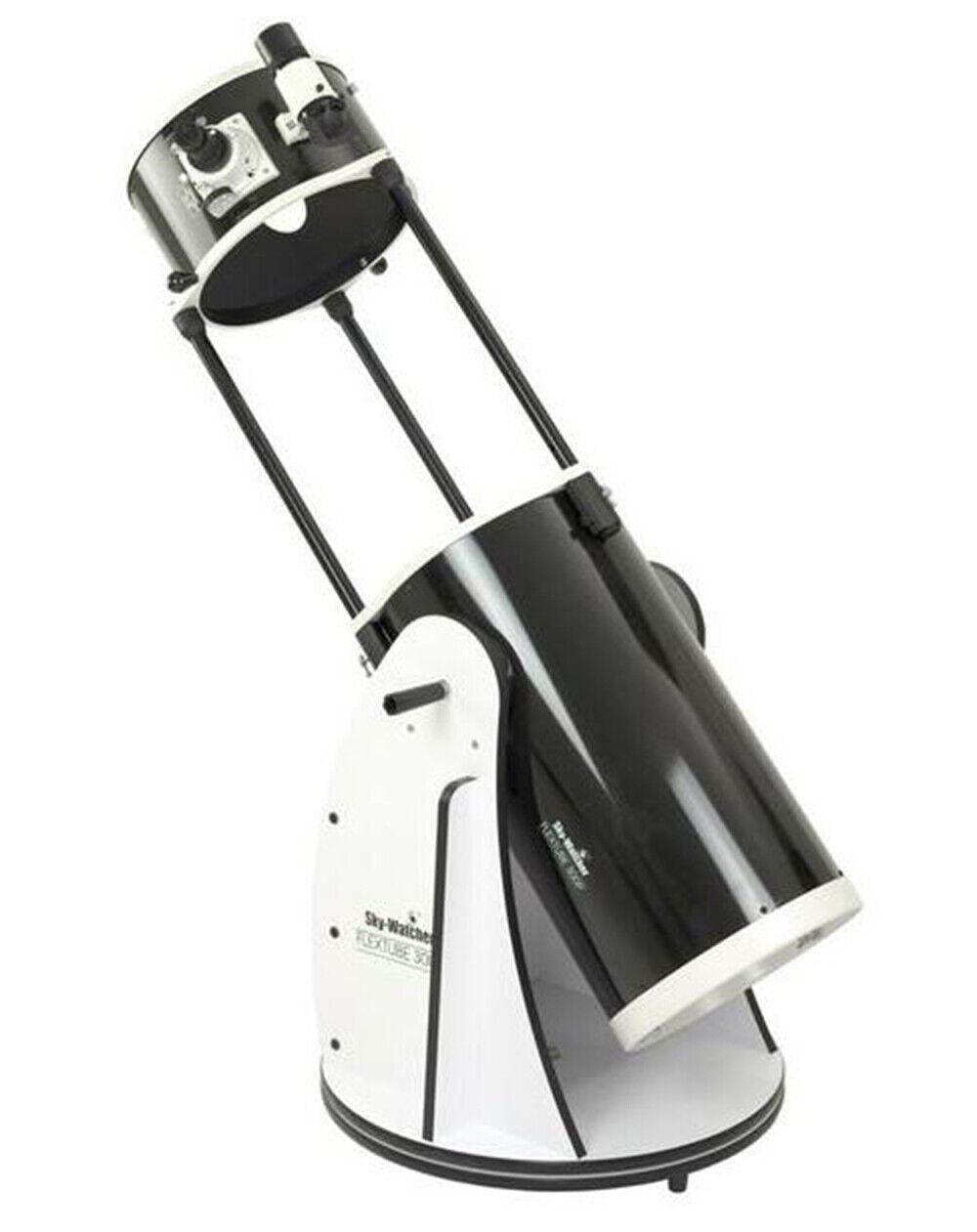 SkyWatcher Skyliner 300P FlexTube Dobsonian 12" Telescope #10158 Dobsonian telescopes offer an incredible aperture-to-price ratio. The Dobsonian mount, popularized by John Dobson in the 1970.s, is a simple and efficient method of mounting a Newtonian reflector, based on the Alt-Azimuth principal. Fast and easy to set up, the Dobsonian mount consists of a box-type mounting which allows the telescope to pivot in altitude, while the box itself is rotated on a base in azimuth. The secret of the design is to correctly balance the optical tube and use frictional materials which allow it to be moved easily when nudged but to stay in position when not. The mount is designed to be driven by hand as opposed to slow motion controls. Sky-Watcher Dobsonians provide excellent all round performance for the observation the Moon and Planets and Deep Sky Objects such as Galaxies and Nebulae. PARABOLIC PRIMARY MIRRORS SKY-WATCHER DELUXE MIRROR COATINGS FREE Fedex Priority 24 & 48 Delivery to Zone 1 Areas