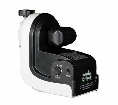 Solar observing has just been made incredibly easy! Sky-Watcher's clever and technologically innovative SolarQuest™ mount is extremely user-friendly and provides a safe experience for automatically locating and observing the sun with your solar telescope. Just roughly level the tripod and point your solar telescope anywhere to the left of the sun and let Sky-Watcher's revolutionary HelioFind™ Solar Alignment Technology automatically do the rest!! At the single push of a button, the telescope will be auto-levelled and the mount via GPS data fixing will calculate the altitude and azimuth of the sun based on the time and location. The telescope will then be pointed to the correct altitude and the mount will slew clockwise hunting for the sun. The Solar Sensor will detect the sun and lock onto it, and will silently track and keep it within the eyepiece's field of view indefinitely. The SolarQuest™ mount can be used by educational establishments, beginners and experienced observers alike. When mated with your solar telescope it is a great companion when observing sunspots, solar eclipses, solar surface details & the transit of inner planets across the sun. The SolarQuest™ mount is lightweight and portable, quiet in operation, has a payload capacity of up to 4kg and accepts telescopes with standard 45mm Dovetail Bars. IMPORTANT NOTICE: The SolarQuest™ mount is designed to be used with solar telescopes only. Do not point any other type of optical device at the Sun. Looking directly at the Sun without verified-safe, professionally made solar filtering will cause immediate and irreversible damage to the eyes (blindness), damage to the telescope, and will be a fire risk. MAIN FEATURES: FREE Fedex Priority 24 & 48 Delivery to Zone 1 Areas