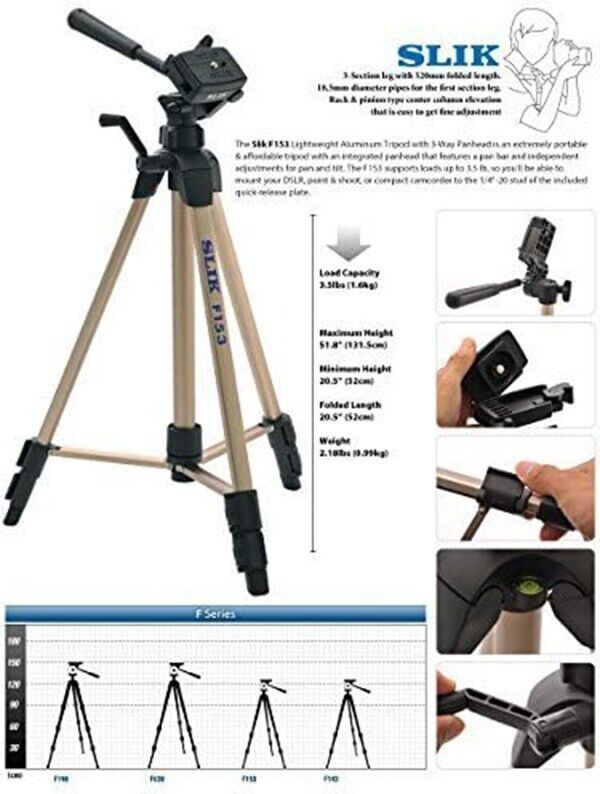 Slik F-153 Lightweight Aluminium Camera Tripod & 3 Way Head Kit (UK Stock) BNIB