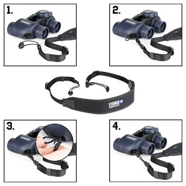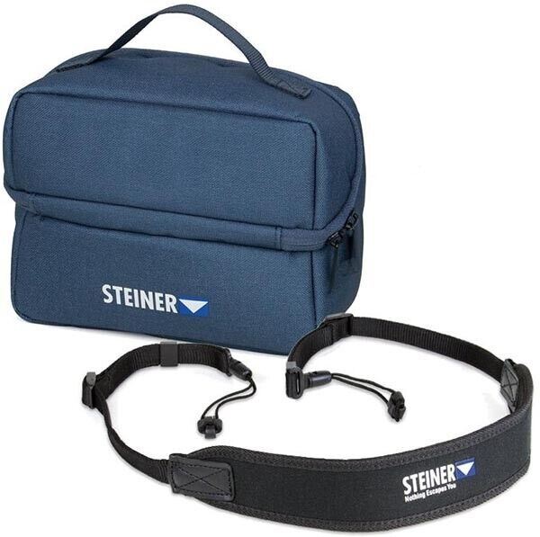 Advanced accessoires We developed for you a new universal attachment system for the neoprene harness. This can be exchanged easily and intuitively between future Steiner products. In addition, a new bag is included to ensure that your binoculars are always optimally protected even when not in use. The usual accessories, such as rain caps and lens caps, are of course still included.