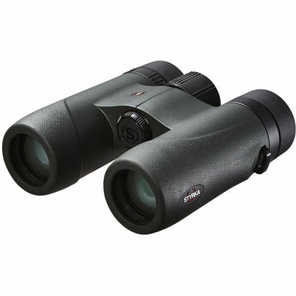 Styrka Strong S7 8 x 30 ED Mid Size Binoculars + Chest Harness Case KIT Key Features Styrka (meaning Strong in Swedish) - Engineered with a compact form factor without compromising critical optical performance, Styrka designed their 8x30 S7-Series Binoculars as an instrument that combines optical performance with rugged construction to give hunters a valuable advantage in all weather and lighting conditions without bogging them down. Styrka employs multiple technologies to overcome the intrinsic issues common on smaller objective binoculars to produce bright, crisp and clear images with accurate colour representation not normally associated with compact optics of this size. First, they use extra-low dispersion (ED) glass elements and phase-corrected BAK4 roof prisms. This combination corrects chromatic aberration for rich and true colour rendition. To increase light transmission, and enhance image brightness and contrast, are fully multi-coated optics using the proprietary SXL-MAX anti-reflection coatings and dielectric prism coatings. The optical coatings are engineered to maximize light transmission across the entire visible spectrum which further increases the colour accuracy, while the prism coatings reduce light loss through them to virtually zero. Their 8x magnification provides users with a larger field of view and angle of view over higher-power binoculars for a more immersive viewing experience, while the smaller objectives keep the size and weight down so as not to be overly cumbersome during a long day with a pack of full gear. Complimenting their optical performance are construction details that make it an ideal companion in all weather and conditions. The housing is nitrogen filled to make them fog-proof with extreme changes in temperatures, and O-ring sealed to give them an IPX7 rating allowing them to be submerged to a depth of 3.3' for up to 30 minutes. Rugged armouring protects the binoculars from drops and impacts while providing a slip-resistant grip - especially in cold and wet weather. A large centre focusing wheel enables precise control even while wearing gloves, and tethered objective covers and ocular rain-guard ensure that you won't lose them in the field during use. Optical Performance Use and Handling Construction Details Specification Prism Type Roof (BAK4) Magnification 8x Objective Lens Diameter 30 mm Angle of View 8.3° (Actual) Field of View 435.7' @ 1000 yd / 145.2 m @ 1000 m Minimum Focus Distance 52.8' / 16.1 m Exit Pupil Diameter 3.75 mm Eye Relief 15.1 mm Inter-pupillary Adjustment 56 to 73 mm / 2.2 to 2.9" Diopter Adjustment -4 to +4 Focus Type Centre Fog-proof Yes, Nitrogen Filled Water Resistance Waterproof, IPX7 Dimensions 4.6 x 4.8 x 1.2" / 11.7 x 12.2 x 3 cm Weight 17 oz / 482 g Package Weight 2.9 lb Box Dimensions (LxWxH) 8.4 x 7.8 x 3.8"