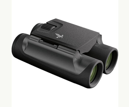 The Swarovski Optik 10x25 CL Pocket Binoculars are a lightweight optic with the quality construction and viewing precision that nature enthusiasts have come to expect from the brand. They feature a dual-hinge bridge that allows the optical barrels to fold tightly underneath for space-saving compact footprint that can easily fit in a pocket, pack, or purse. The folding bridge design also yields a broad 51-74mm inter-pupillary distance, so the binoculars are comfortable for a wide range of adults and children. High-quality glass bearing Swarovski's SWAROBRIGHT, SWAROTOP, and SWARODUR lens coatings deliver a crisp image with accurate color rendition across the entire field of view.