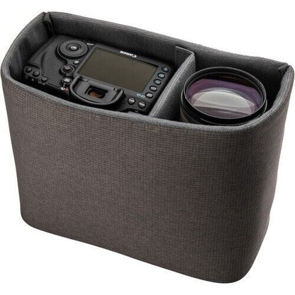Tenba Cooper DSLR Camera Backpack Bag with Leather Accents in Grey #637-408 Store, transport, and protect your DSLR camera, 2-3 lenses up to 70-200mm 2.8, and related accessories with the gray Cooper DSLR Backpack from Tenba. The top compartment has organizational pockets, room for personal items and a sleeve for a 10" tablet. Photo gear is stored in the removable padded insert located in the lower compartment. This compartment is accessed by a zipper. Padded, touch-fastening dividers are useful for organizing and protecting camera equipment. For additional storage there are front and top rear zip pockets. Carry the pack with the top handle, or wear it with the padded, adjustable shoulder straps. The pack is constructed from strong, durable Cordura canvas and waterproof leather. Included with the pack is a rain cover with a silver side to reflect heat and a black side to absorb it. What’s Included? Specification Carry/Transport Options Backpack Straps, Handle Colour Grey Type of Closure Zipper Laptop/Tablet Compartment Single Compartment: Fits 10" Tablet Interior Type Adjustable Dividers (Hook & Loop) Water Resistance Rain Cover, Water Resistant (Material) Materials Exterior: Canvas, Cordura, Leather Exterior Weight 3 lb / 1.36 kg (Backpack) Package Weight 3.21 lb Box Dimensions (LxWxH) 22.35 x 12.6 x 7.85"