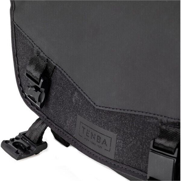 Built for seamless transitions between photojournalism and sports photography, urban exploration and adventure travel, and all kinds of social events with or without a camera, the black Tenba DNA 9 Slim Camera Messenger Bag can hold a camera with two or three lenses plus a flash, accessories, personal gear, and a tablet. The camera and lenses fit within a padded insert in the main compartment that can be removed to allow its use as a conventional bag. Thoughtful design features and proprietary hardware make this bag easy to use and durable against the elements.