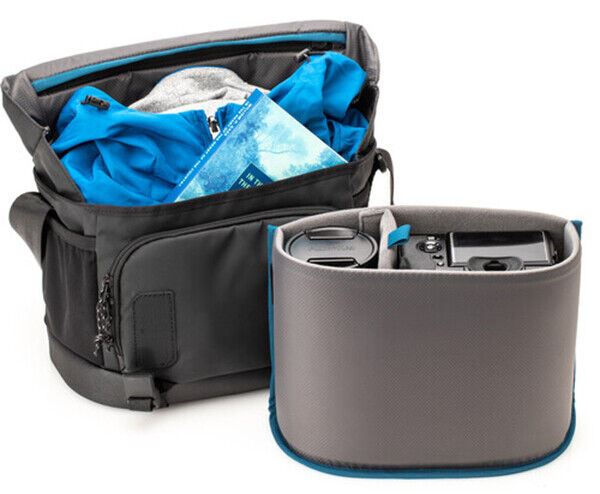Removable padded camera insert slides out to convert the bag for general-purpose or non-photo use—it does not affect the rear sleeve so the bag can still be used to carry a tablet even when the padded insert has been removed