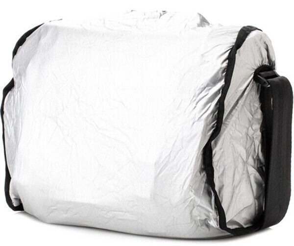 Removable and reversible WeatherWrap rain cover is silver on one side to reflect the sun on hot days and black on the other side to blend in