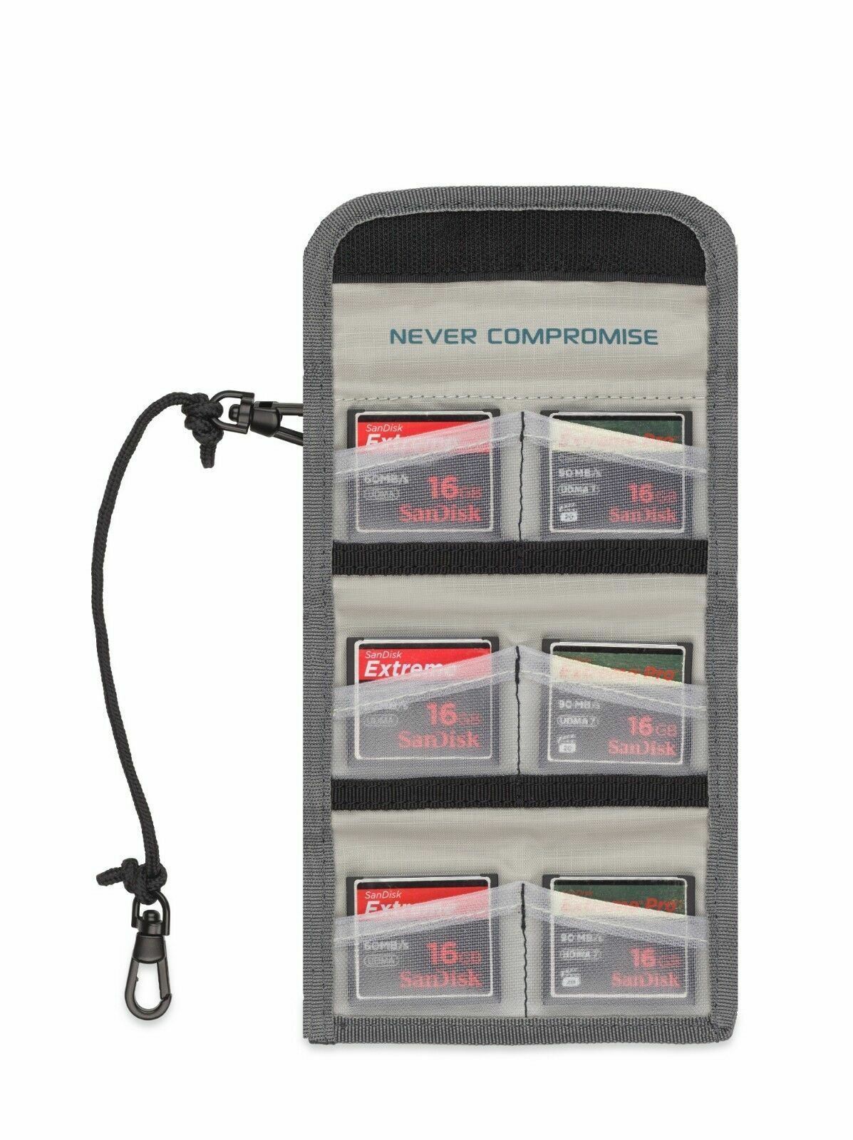 The Tenba Tools Reload CF 6 is a slim card wallet designed to carry up to 6 Compact Flash (CF) cards.