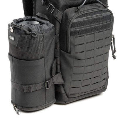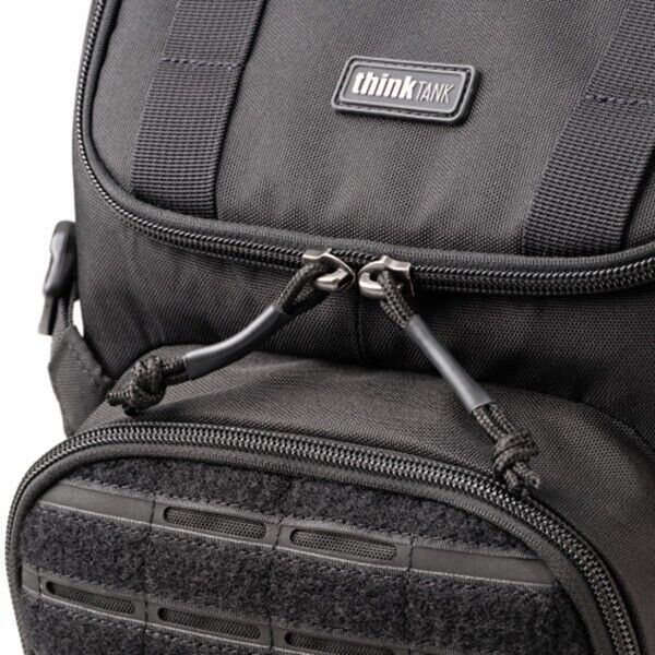 - Tactical webbing rails on the side enable you to attach Think Tank modular pouches