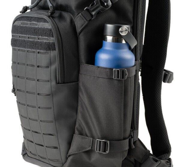 - Right side pocket with web cinch fits a water bottle or tripod using upper and lower compression straps with SR buckles for added security