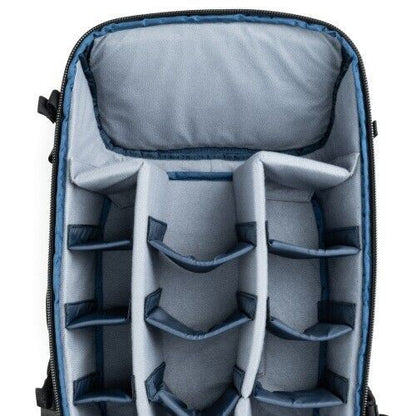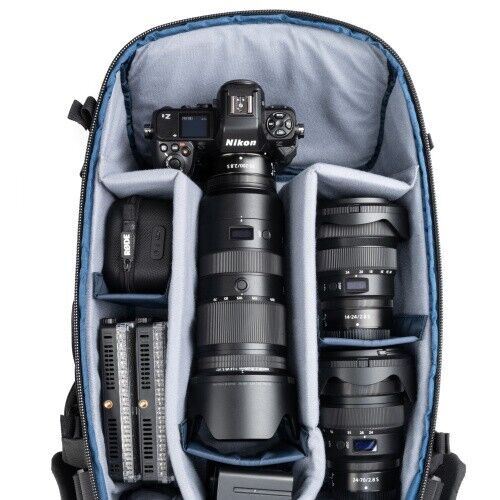 - Adjustable dividers accommodate large telephoto lenses, traditional photo gear, or personal items