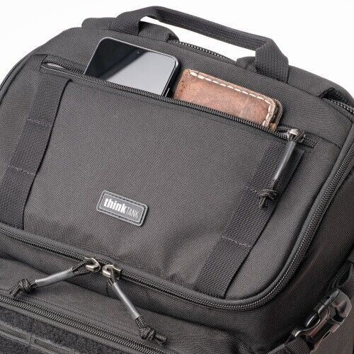 - Tactical webbing rails on the side enable you to attach Think Tank modular pouches
