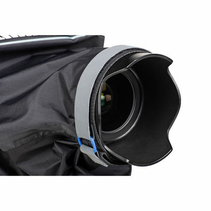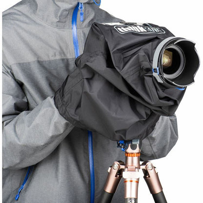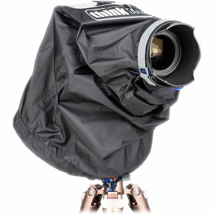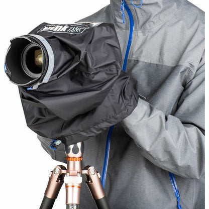 Think Tank Emergency Rain Cover - Small - for standard DSLR + Lens Key Features Protect your camera and lens with the small-sized Emergency Rain Cover from Think Tank. This cover features a DWR coating and sealed seams for added protection against rain, sleet, snow, sand, and dust. Fold it down to fit into the included compact carrying pouch and keep it in your camera bag so you're prepared to quickly deploy it in a downpour or sand storm. This cover will fit over a DSLR or mirrorless camera with a 16-35mm f/2.8, 14-24mm f/2.8, 24-105mm f/4, 24-70mm f/2.8, or similar-sized lens. It has a non-slip, adjustable strap that cinches to the lens hood, so it stays put once in place. It can be used while shooting atop a tripod or monopod, has an oversized window for viewing your LCD and controls, and the shoe mount keeps it securely on your camera when in use. It has a cinchable sleeve through which you access your camera and dual viewing configurations for varying conditions. Seam-sealed for protection in heavy rain or dusty conditions Folds down to fit into an included compact carrying pouch Quickly and easily deployed Fits over DSLR or mirrorless cameras with 16-35mm or 24-70mm f/2.8 attached Access your camera through the cinchable sleeve Oversized window allows you to view your LCD and controls Shoe mount to keep the cover securely attached to your camera Non-slip, adjustable strap cinches to lens hood Can be used while shooting atop a tripod or monopod DWR (Durable Water Repellent) coating adds an extra layer of protection Measures 12.2" long with a 3.1 to 5.5" adjustable diameter What’s Included? Specification Material Nylon, Polyurethane, Taffeta Type of Closure Cinch, Strap Maximum Lens Diameter 5.51" / 14 cm Shoe-Mount Flash Compatible Yes Tripod Mountable Yes Dimensions 12.2" / 31 cm Weight 3.77 oz / 107 g Package Weight 0.37 lb Box Dimensions (LxWxH) 7.9 x 7.45 x 1.9"