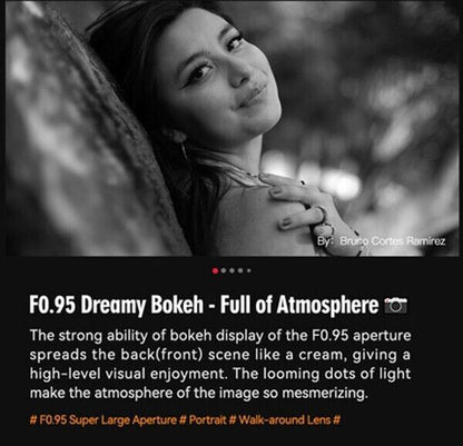 · A maximum aperture of f/0.95 offers outstanding low-light imaging capabilities along with the ability to create images with an extremely shallow depth of field.