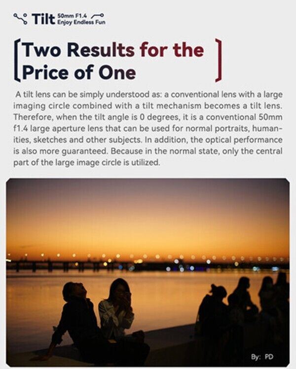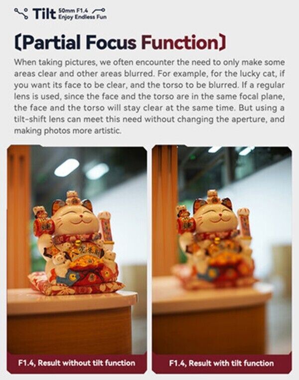 Bright f/1.4 maximum aperture, creating a narrow depth of field ideal for subject and background separation in portraits when not using the tilt mechanism.