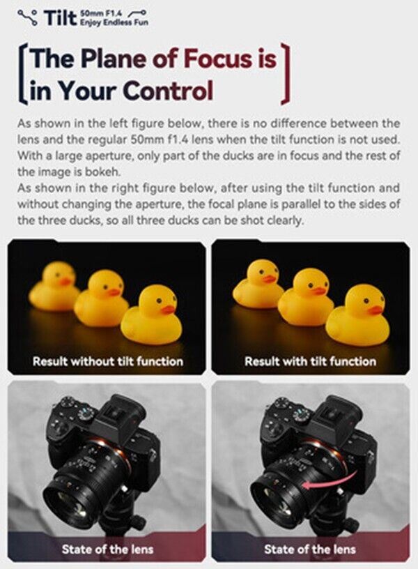 Bringing advanced focus control to the masses, the TTArtisan Tilt 50mm f/1.4 Lens is an otherwise conventional, normal length prime lens for full-frame Nikon Z-mount cameras. It gives you the power to control the angle of the focus plane up to 8° and can be rotated up to 90° to apply the effect in any direction. It boasts a bright f/1.4 maximum aperture, which allows it to perform in challenging lighting conditions as well as providing depth of field for isolating subject matter more efficiently.
