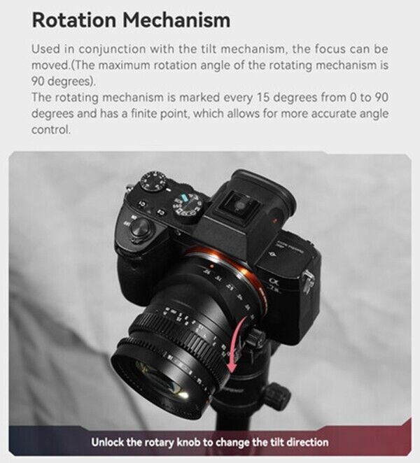 A perspective control lens providing up to 8° of tilt angle, giving you the freedom to adjust the plane of focus to match your subject, and to create a wide range of unique visual effects.