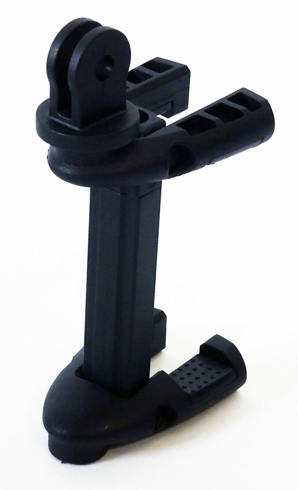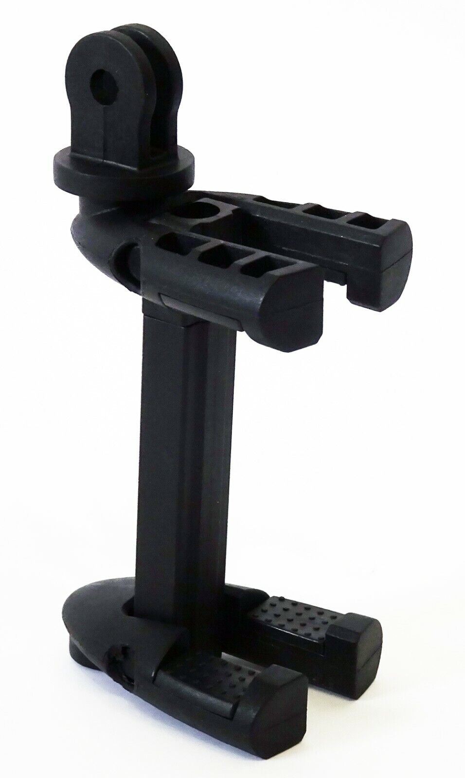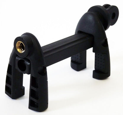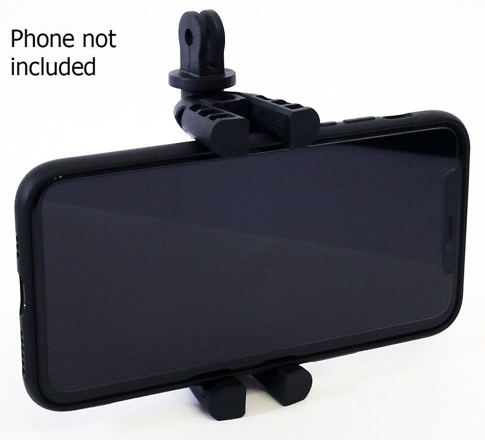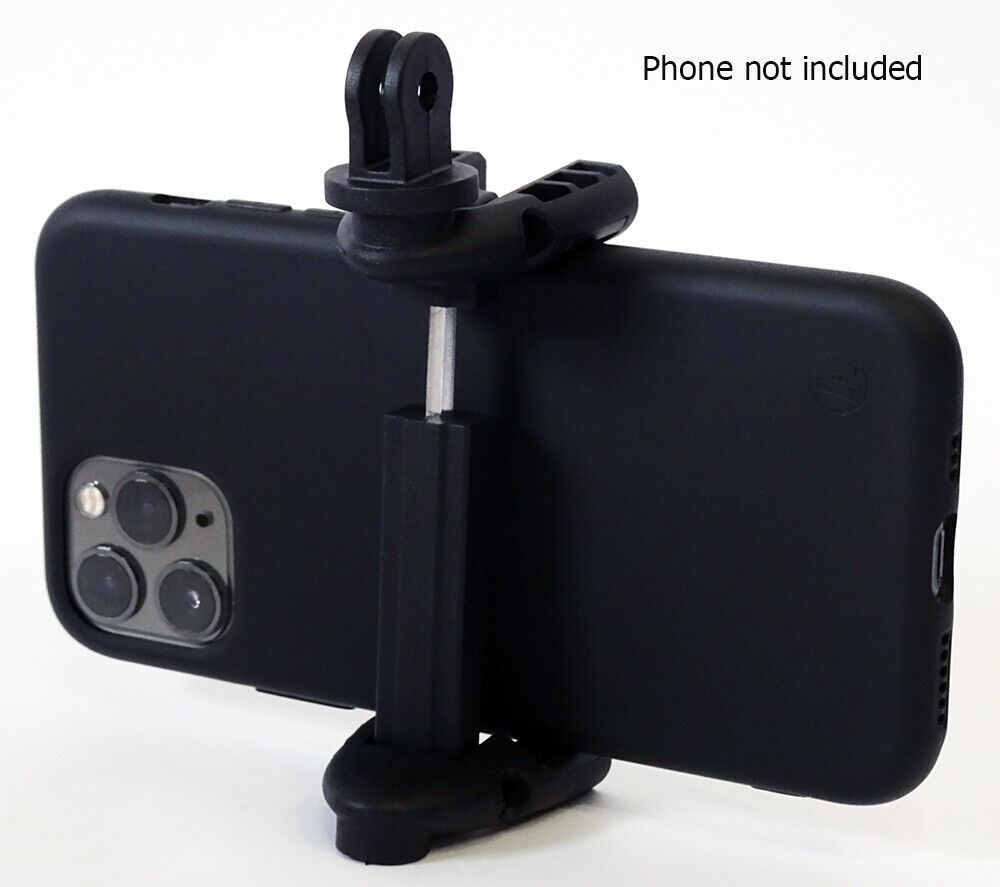 Velbon Summit Tripod adapter for Mobile Phone & GoPro #2391 Black This universal adapter allows a Smartphone or GoPro/Action camera to be mounted onto any tripod, monopod, clamp or suction cup which has a standard 1/4" camera thread. It also allows smartphones to be fitted onto a GoPro 3-prong mount. The rubber-lined jaws are spring-loaded and adjustable from 55mm to 87mm. The jaws can also be folded flat for compact storage. Features:
