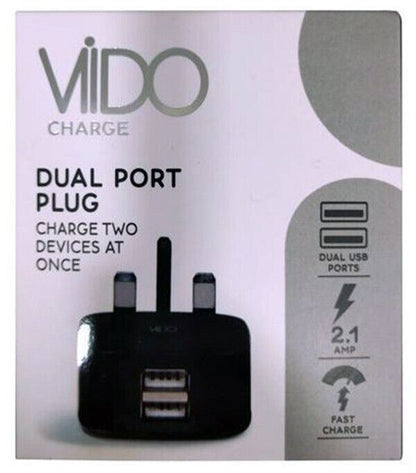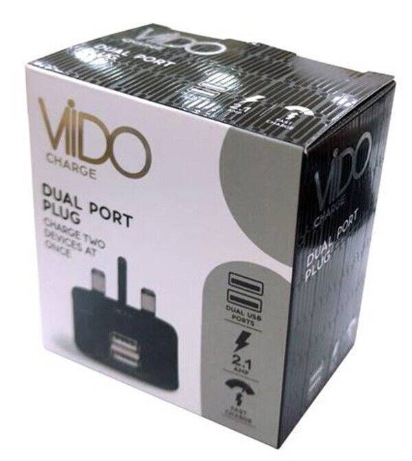 VIDO 2.1 AMP Fast Dual Twin 2 Port USB Charger for UK Mains Wall Plug #05405