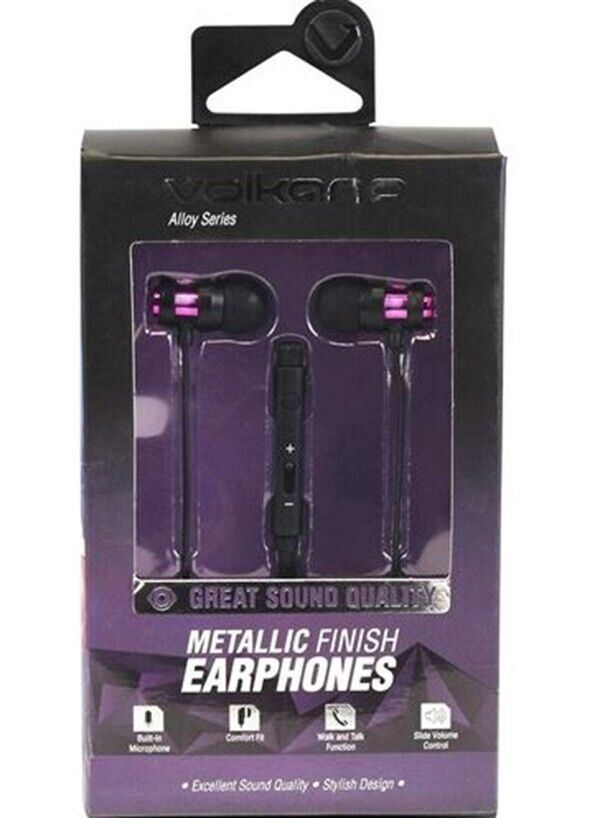 Volkano Alloy In-ear Wired Stereo Headphones + Mic Black Purple Comfort fit Buds