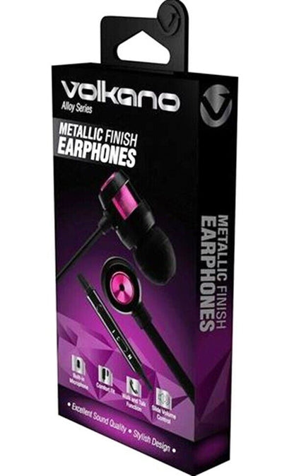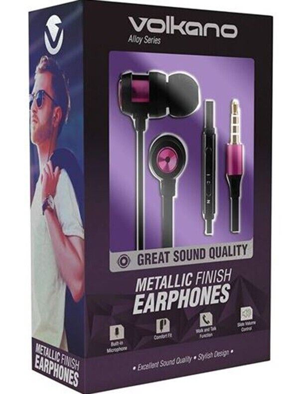 Volkano Alloy In-ear Wired Stereo Headphones + Mic Black & Purple Comfort fit Buds