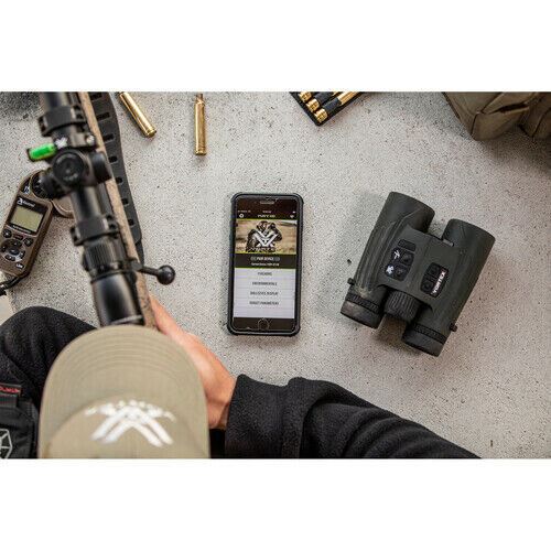 Engineered to be an indispensable addition to your hunting gear, the Vortex 10x42 Fury HD 5000 AB Laser Rangefinder Binocular is designed for the unique needs of the most discerning rifle & bow hunters and other shooters who demand pinpoint accuracy on their first shot, no matter how far away their target is. An array of built-in sensors, plus a powerful ballistic solution app for your smartphone that communicates with the binocular via Bluetooth, provide accurate firing solutions for just about any round you send downrange. This rangefinder is packed into a premium binocular defined by a wide field of view, ED glass, phase-corrected and dielectric coated roof prisms, and anti-reflection fully coated optics.