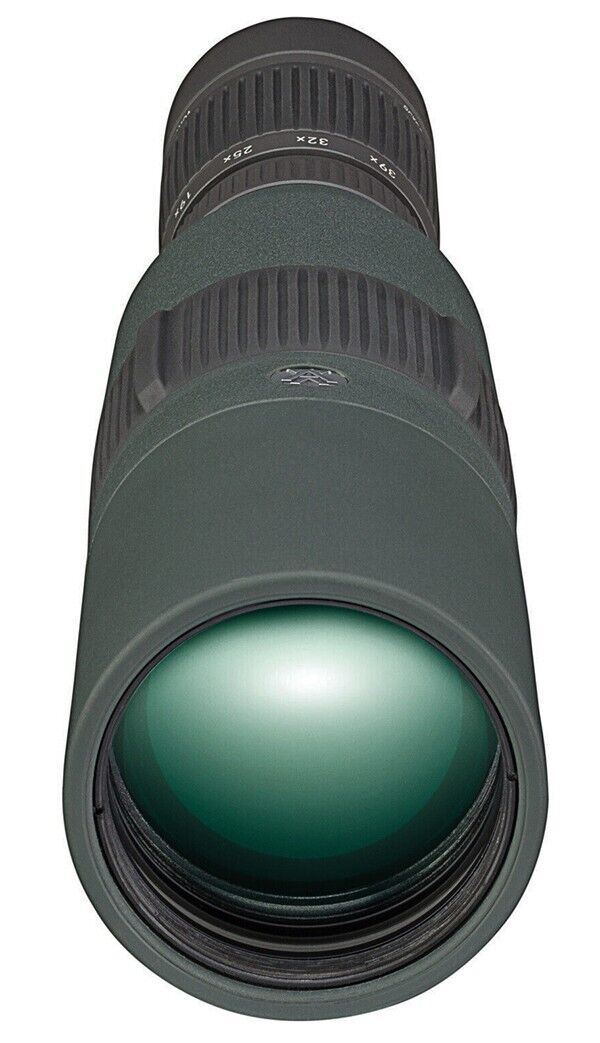 Exterior lenses are protected by ArmorTek - an ultrahard, scratch-resistant compound that repels oil, dirt and the corrosive salts of fingerprints. Fully multi-coated with scratch-resistant XR Plus premium coatings for extremely high resolution and optimal light transmission. A die-cast magnesium alloy body with rubber armouring ensures strength, durability and lightweight performance and the increased depth of field over the previous Razor spotting scopes allows the use of the helical/barrel focus system. The new Razor 56mm 'scopes are 100 percent waterproof, fog-proof (purged with argon gas), dustproof and are covered by the Vortex Unlimited Lifetime Warranty.