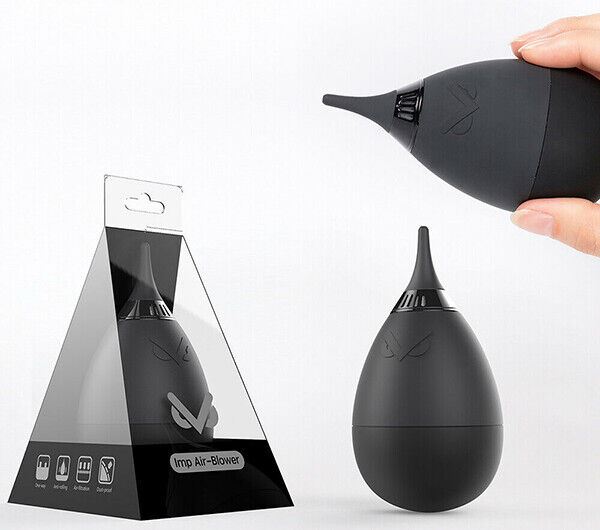With the weighted round base, the Imp will stay upright on all work surfaces. In it's neck is a small air filter that filters the air drawn into the bulb, giving you a blast of dust free air onto whatever you are cleaning. The soft silicone nozzle prevents any scratching if you accidentally touch the surface of any lens or sensor you may be working on.