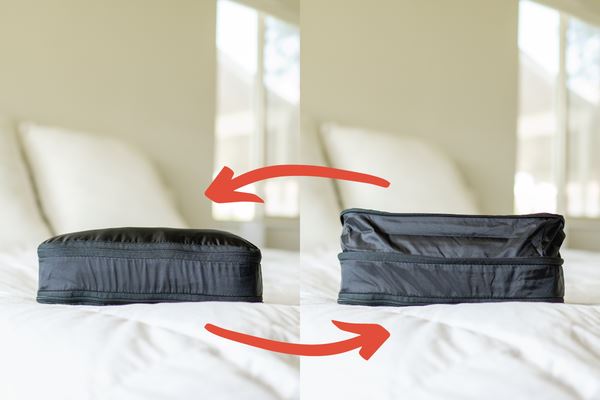 (Medium & Large) Unzip and expand for easier packing or extra space. Zip closed and compress, so everything fits inside your luggage. It's really that easy.