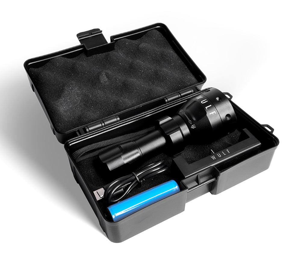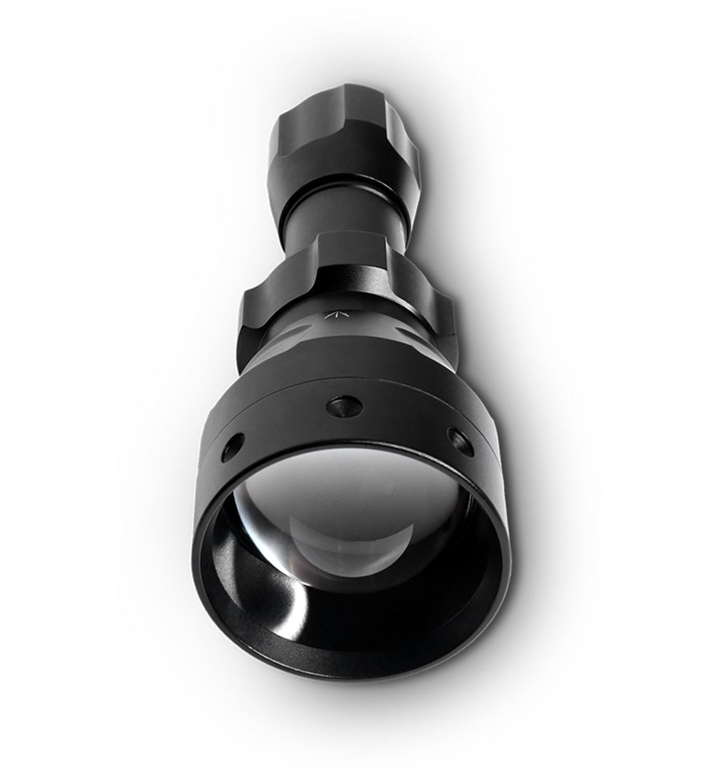 The WULF Fi IR 50mm Torch: The LED based IR illuminator comes in either 850NM or 940NM. The WULF Fi IR 850nm illuminator offers an exceptionally clear image and a slightly extended range when compared to its more covert 940nm counterpart. Both units will offer a pure image to your night vision rifle scope or observation system. The WULF Fi IR 50mm boasts a 50mm focusable head, enabling you to switch between a spot beam for extended distances or a wide-ranging beam allowing you cover wider open fields at shorter distances. This IR illuminator pairs seamlessly with a range of models, including the HikMicro Alpex and the brand new HikMicro Alpex 4K, Pulsar C50, Pard NV008S, Sytong HT60 Pard DS35, and Arken Zulus.