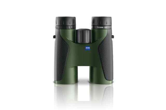With its fibreglass-reinforced, waterproof casing, the Terra ED fulfills the high expectations of the outdoor enthusiast. The Terra ED line is designed to be compact, light and sturdy. This means: the Terra ED is the ideal companion that weighs little, fits easily into every pocket and is almost indestructible. Whether on long journeys, in the open countryside, at racetrack or concerts, on city tours, in the mountains or on the open seas. Thanks to maximum optical precision and a hydrophobic multi-coating, the Zeiss Terra ED meets all demands for versatile use. This state-of-the-art coating ensures that ZEISS Terra ED will impress you even under difficult conditions such as adverse weather and challenging outdoor situations. These binoculars guarantee outstanding images, minute details and absolutely natural colours. The large, smooth-running and easy-access focusing wheel of the Terra ED makes focusing especially easy and fast. Pick up a pair of Terra ED binoculars and their advantages are instantly apparent. The index finger automatically positions itself on the focus wheel. You no longer have to think about how best to hold the binoculars if an exciting scene appears right in front of you. Quick as a flash, you are focused on the object of your interest. You can be sure never to miss out on those unforgettable moments. On the contrary, you have a razor-sharp, ringside view of them. Active outdoor lifestyles demand compact, durable and versatile binoculars. The Zeiss Terra ED delivers razor-sharp images of far-away objects. But it can also observe nature up close with great precision. With a generous wide field of view and a close focus distance of just 1.6 m (Terra ED 32 and 42) or 1.9m (Terra ED Pocket), the Terra ED is ideal for nature observation, whether the object is far across the field or in the tree just above you. The Zeiss Terra ED family is lightweight and trail-tough so it packs easily and stands up to rugged terrain. Easy-grip surfaces let you grab and lift the binoculars quickly to your eye. Smooth focus and ergonomically correct eye-cups make viewing comfortable and natural. At just 310g, the Zeiss Terra ED Pocket is the lightest weight model in its class. Specifications Magnification 8 × Effective lens diameter 42 mm Exit pupil diameter 5.3 mm Twilight factor 18.3 Field of view at 1,000 m (yds) 125 m (375 ft) Subjective viewing angle 56° Close focusing distance 1.6 m (5.3 ft) Diopter adjustment range − 3.0 | + 3.0 dpt Exit pupil distance 18 mm Pupil distance 58 – 75.5 mm Lens type ED Prism system Schmidt-Pechan Operating temperature − 15°C | + 60°C (+ 5°F | + 140°F) Length 142 mm (5.6 ") Width at an inter-pupillary distance of 65 mm 120 mm (4.7 ") Weight 725 g (25.6 oz)